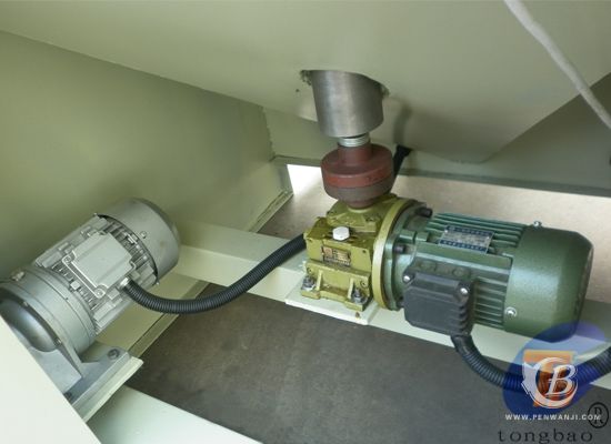 帶動(dòng)工作的電動(dòng)馬達(dá),左邊銀白色馬達(dá)為控制自動(dòng)搖擺噴槍所置,右邊綠色為控制主工作轉(zhuǎn)盤