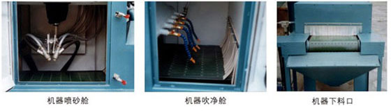 5,采用多槍噴砂,操作時,僅需將工件置于輸送帶上,即可進(jìn)行自動噴砂加工。操作十分簡單方便;